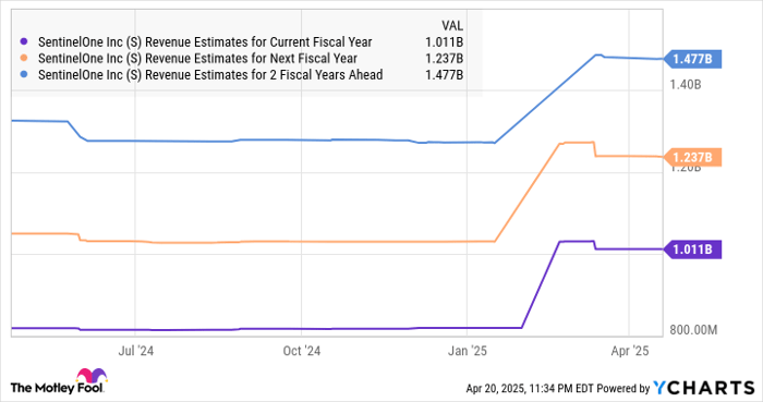 Analysts are expecting SentinelOne to record healthy 20%-plus top-line growth in the current and the next couple of fiscal years.
