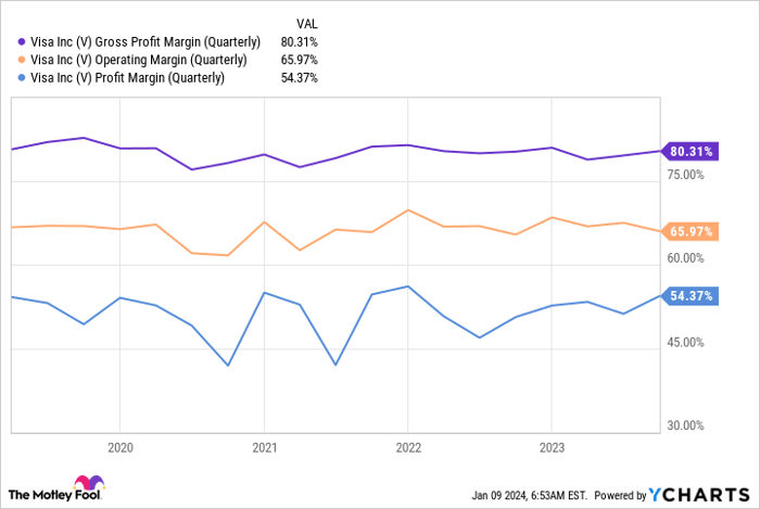 Every time a Visa-branded card is swiped, the company collects a small usage fee, leading to substantial profits. Even more impressive, Visa consistently boasts some of the highest profit margins of any enterprise.