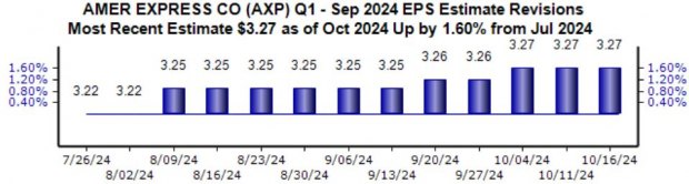 Revisions in the quarter’s forecasts for American Express have displayed optimistic trends since mid-July. With anticipated earnings of $3.27 per share, the company braces for a stagnant year-over-year growth in earnings, buttressed by a favorable revision trajectory.