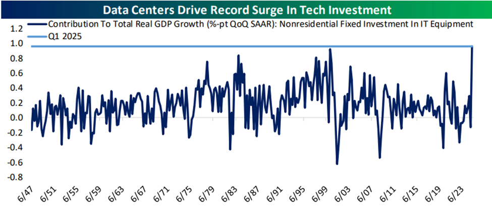 Data center investment added a full percentage point to GDP in Q1; a record.