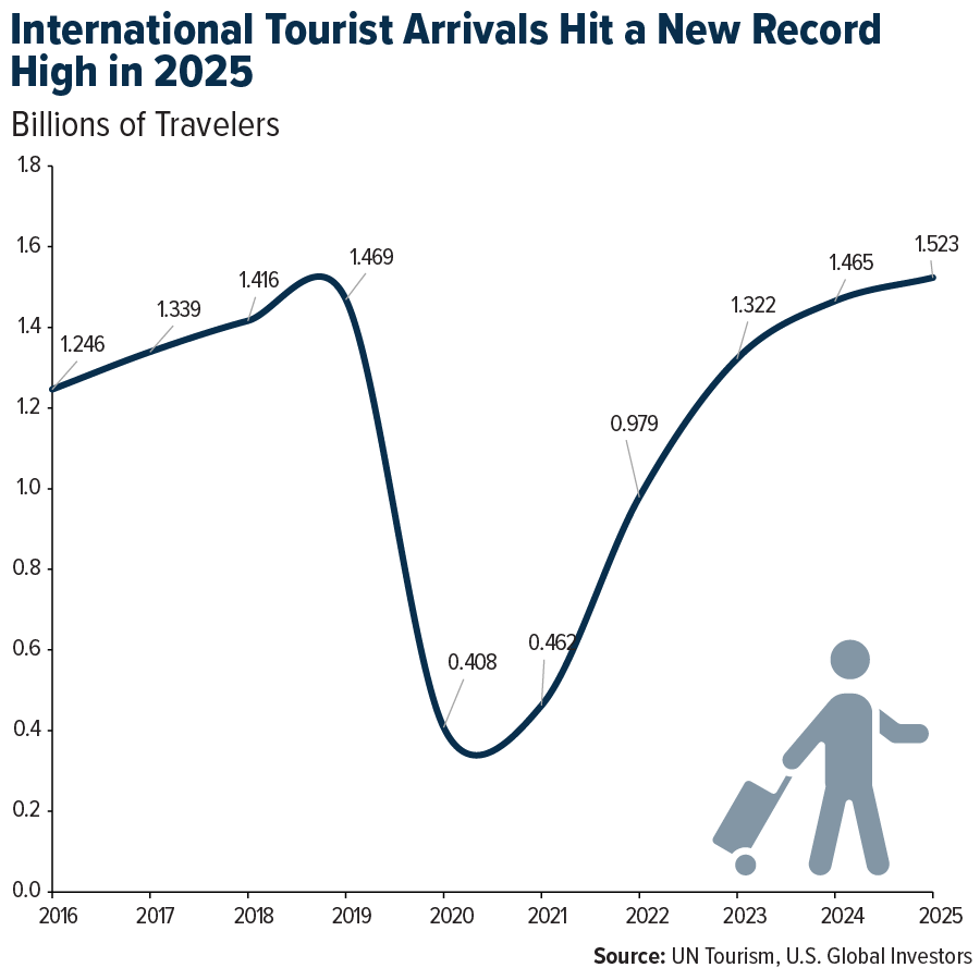 Europe’s tourism sector illustrated this perfectly. While international arrivals grew a healthy 3.2% in 2025, spending grew nearly 10%. That gap should tell investors about the quality of demand right now. People aren’t just showing up… they’re showing up and opening their wallets.