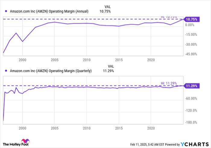Amazon isn’t likely to keep this peak profitability in the near term, but it’s likely to get there again at some point. It continues to refine its fulfillment process, and it’s making strides in the higher-margin businesses. AWS is a high-margin business, and with the new, lower-cost developments like DeepSeek and Amazon’s own new large language model, Nova, AI is likely to become a lot cheaper to run as the tech advances.