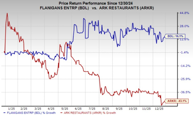While both Ark Restaurants and Flanigan’s Enterprises operate in the broader restaurant-and-bars space, their fundamentals reflect two very different investment profiles. Ark Restaurants’ portfolio is built around destination-driven venues in premium, high-traffic markets, supported by a mix of full-service restaurants, bars and fast-food concepts across major tourist and urban hubs. This gives ARKR exposure to event- and travel-linked demand, but also creates greater sensitivity to location-specific developments, especially when a meaningful portion of revenue is tied to a handful of marquee assets.