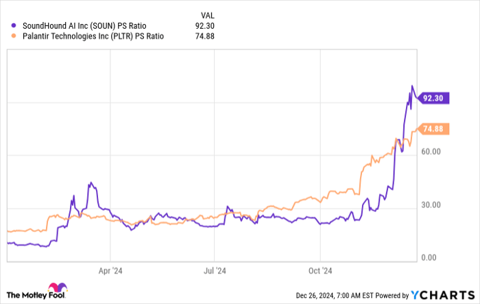 Two of the hottest artificial intelligence (AI) stocks heading into 2025 are Palantir Technologies (NASDAQ: PLTR) and SoundHound AI (NASDAQ: SOUN). Both stocks had a phenomenal 2024, with Palantir’s stock up almost 400% and SoundHound AI’s gaining nearly 900%.