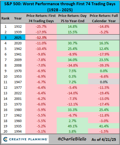 In fact, while the market recovered over the past few trading days, just last week, it was tracking for its third-worst year on record after dropping more than 12% in the first 74 trading days.
