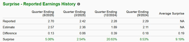 In its latest report, EPS came in at $2.70, ahead of the $2.57 consensus. Forward estimates are moving higher, with 2025 EPS forecasts jumping from $9.60 to $10.41 in just 60 days. The same upward momentum is seen for 2026, with projections climbing from $10.81 to $11.74.