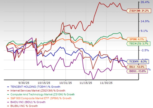 Tencent, with its dominant social media and gaming platforms, stands to gain from increased consumer spending. Baidu’s AI capabilities position it well in China’s expanding artificial intelligence sector. Bilibili, a leading video-sharing platform popular among younger Chinese consumers, could benefit from the government’s focus on boosting domestic consumption. These stocks have experienced recent weakness, creating potential entry opportunities for investors. Over the past three months, shares of Baidu, Tencent and Bilibili have lost 13.5%, 9.3% and 12.5%, respectively. This underperformance comes despite their strong positions in China’s growing digital economy.