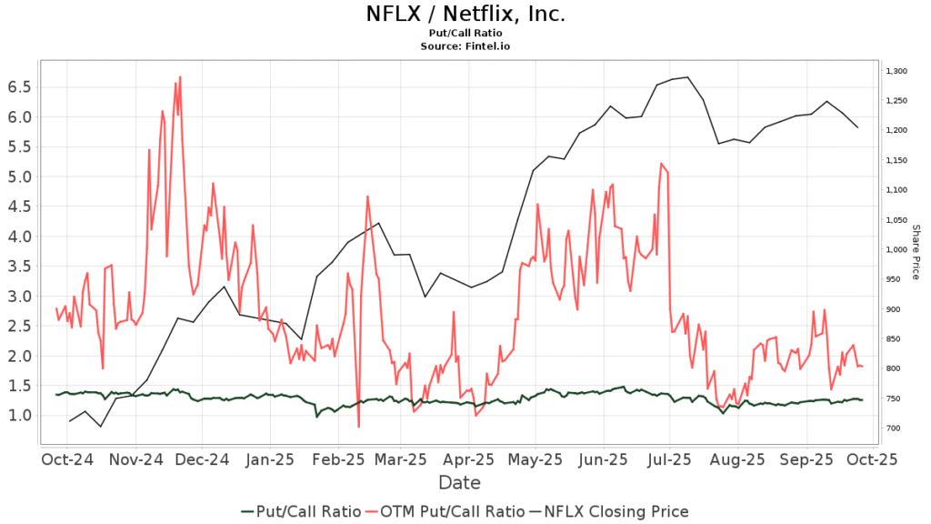 The put/call ratio of NFLX is 1.25, indicating a bearish outlook.