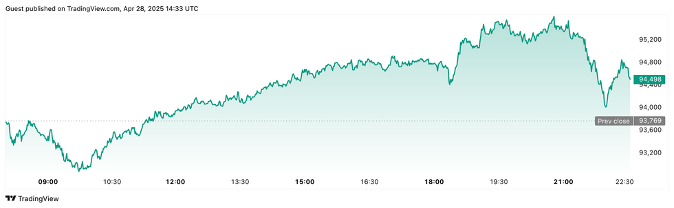 Bitcoin performance, April 28, 2025.