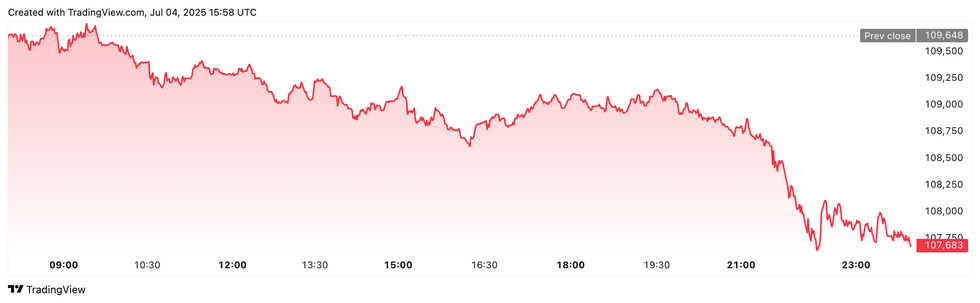 Bitcoin price performance, July 4, 2025.