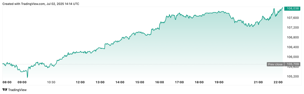 Bitcoin price performance, July 2, 2025.