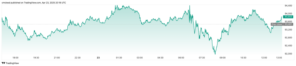 Bitcoin performance, April 23, 2025.