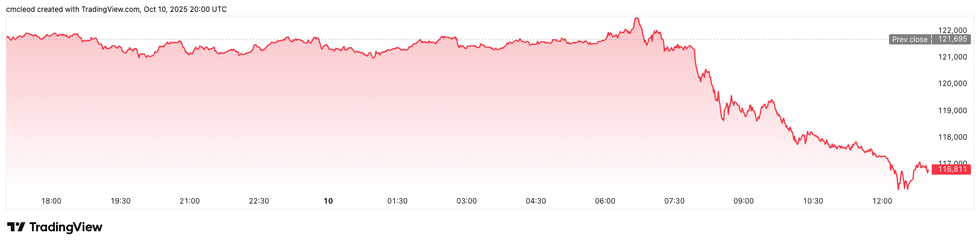 Bitcoin price performance, October 10, 2025.