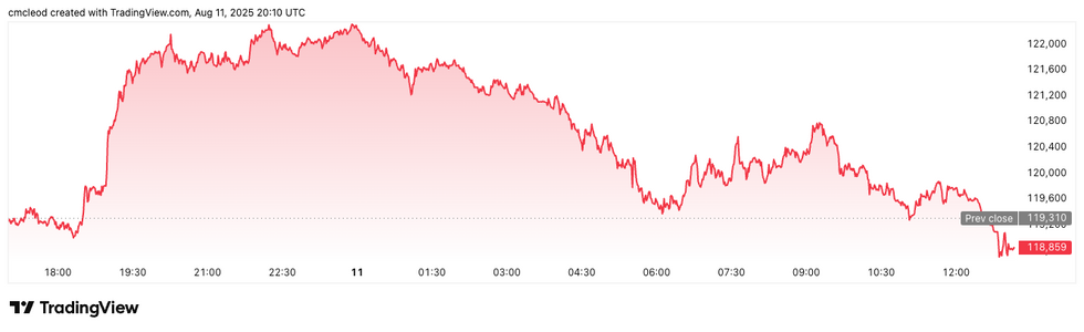 Bitcoin (BTC) was priced at US$118,815, down by 0.1 percent over the last 24 hours and its lowest valuation on Monday. Its highest price for the day was US$120,693.