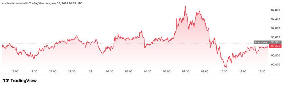 Bitcoin price performance, November 28, 2025.