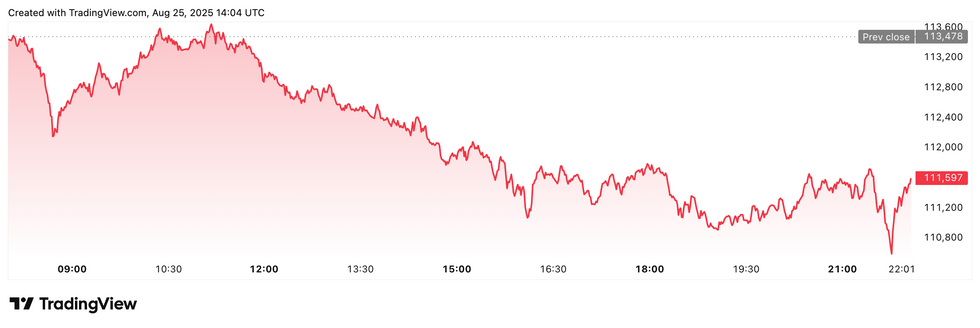 Bitcoin (BTC) was priced at US$111,481, a 2.6 percent decrease in 24 hours. Its lowest valuation of the day was US$110,788, and its highest was US$114,779.