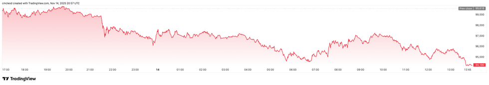 Bitcoin price performance, November 14, 2025.