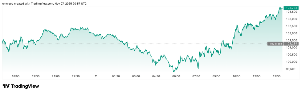 Bitcoin (BTC) was priced at US$103,760, a 3.8 percent decrease in 24 hours, and its highest valuation of the day. Its lowest was US$99,590.49.