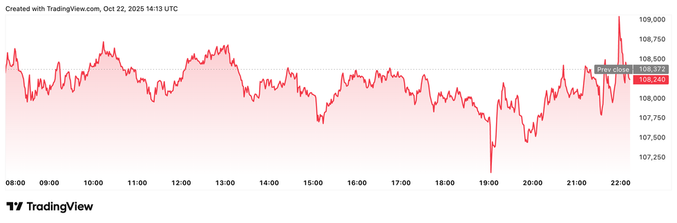 Bitcoin (BTC) was priced at US$108,323, a 1 percent decrease in 24 hours. Its lowest valuation of the day was US$107,393, and its highest was US$113,804.
