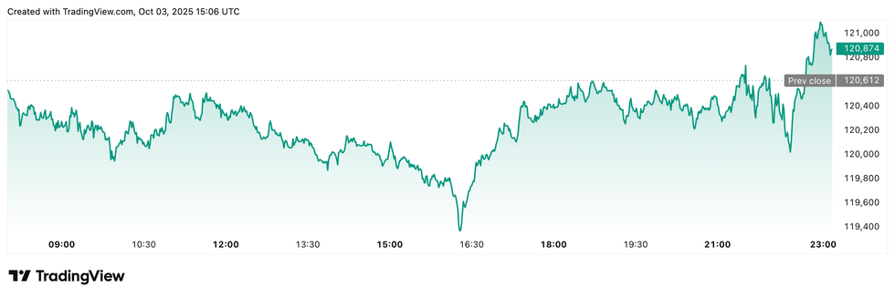 Bitcoin (BTC) was priced at US$120,724, trading 13 percent higher over the past 24 hours. Its lowest valuation of the day was US$118,777, while its highest was US$121,044.