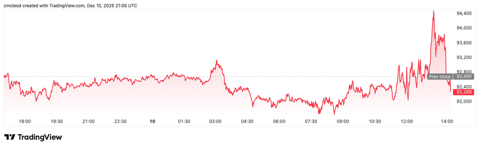 Bitcoin price performance, December 10, 2025.