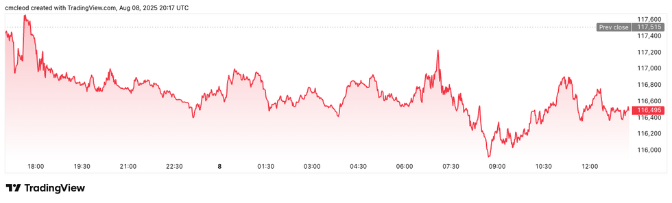 Bitcoin (BTC) was priced at US$116,454, down by 0.8 percent over the last 24 hours. Its lowest valuation on Friday was US$115,979, while its highest valuation was US$117,038.