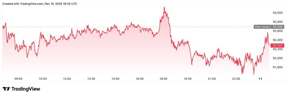 Bitcoin price performance, December 10, 2025.