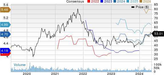 These strategic initiatives are poised to enhance eBay’s e-commerce landscape, catering to the evolving needs of both sellers and buyers. This, in turn, is anticipated to drive increased traffic to the platform, thereby bolstering its financial performance in the foreseeable future. Analysts project a 1.5% year-over-year revenue growth in 2024, with an estimated EPS growth of 10.9% compared to 2023 figures.