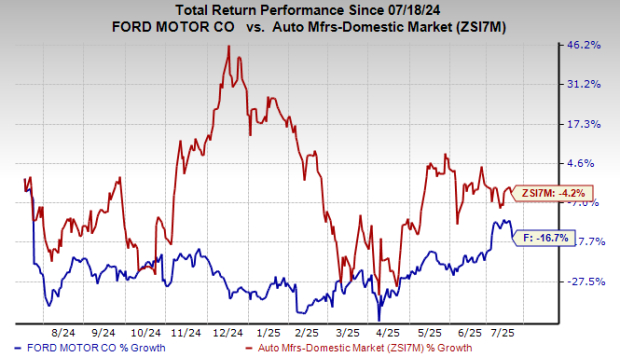 Shares of Ford have slumped 16.7% over the past year compared with the industry’s 4.2% decline.