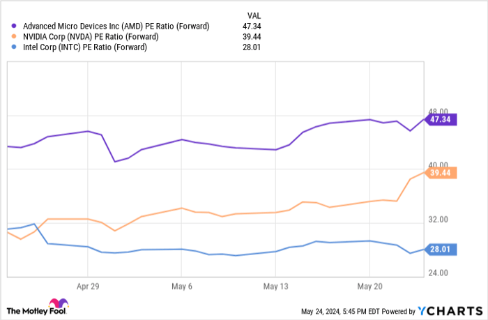 While Advanced Micro Devices (NASDAQ: AMD) has witnessed an impressive 31% surge in its share price over the last year, its profit margins have yet to catch up with its lofty valuation. The forward price-to-earnings (P/E) ratio comparison of key players in the chip space reveals AMD to be the least enticing investment option among them. This opens the door for other competitors who may offer better value in the AI market.