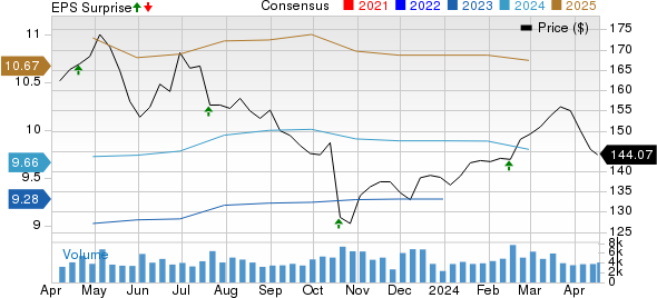 Genuine Parts Company delivered first-quarter 2024 adjusted earnings of $2.22 per share, showing a 3.74% increase compared to the previous year. Surpassing the Zacks Consensus Estimate of $2.15 per share, the bottom line exhibited resilience in the face of market expectations. Though the company reported net sales of $5.78 billion, the figure slightly missed the Zacks Consensus Estimate of $5.84 billion with a meager 0.32% year-over-year growth. This modest uptick was primarily driven by a 1.9% boost from acquisitions, countered by a 0.9% dip in comparable sales and a 0.7% impact from unfavorable foreign currency exchanges.