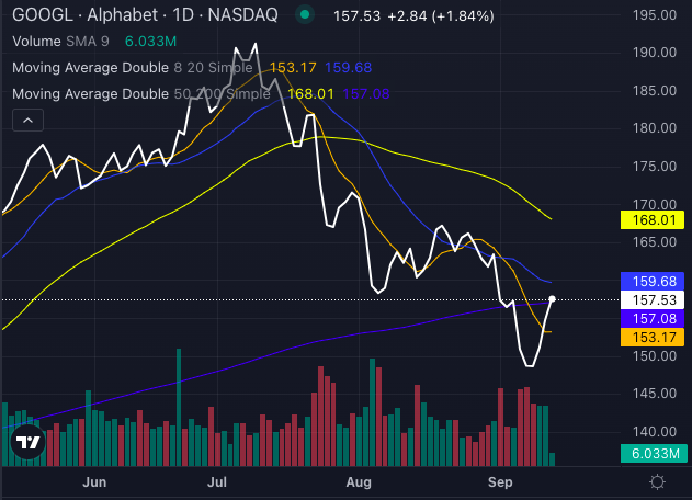 Currently priced at $157.53, slightly above the eight-day simple moving average of $153.17, Alphabet’s stock displays a bullish signal in the short term. However, with the stock trading below the 20-day SMA of $159.68 and the 50-day SMA of $168.01, the broader outlook remains steeped in bearish hues. Concurrently, the 200-day SMA at $157.08 mirrors the stock price, reflecting the ongoing struggle below this critical average.