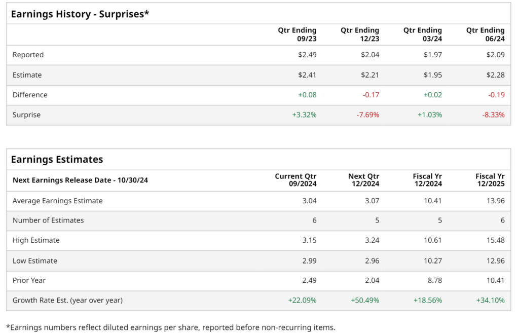 Peer into the crystal ball for fiscal 2024, where the narrative unfolds with analysts prophesying an EPS of $10.41, thriving 18.6% past the prior fiscal’s $8.78. Even greener pastures lay in store, with a 34.1% leap earmarked for fiscal 2025, reaching a projected EPS of $13.96.