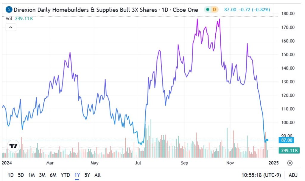 The NAIL ETF: Although the leveraged housing fund was looking strong up until late November, economic and political uncertainties saw the ETF go negative for the year.