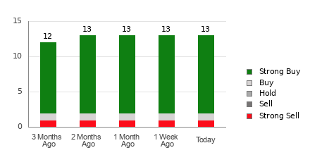 Of the 13 recommendations that derive the current ABR, 11 are Strong Buy and one is Buy. Strong Buy and Buy respectively account for 84.6% and 7.7% of all recommendations.