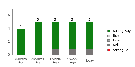 Teekay Tankers currently has an average brokerage recommendation (ABR) of 1.60, on a scale of 1 to 5 (Strong Buy to Strong Sell), calculated based on the actual recommendations (Buy, Hold, Sell, etc.) made by five brokerage firms. An ABR of 1.60 approximates between Strong Buy and Buy.