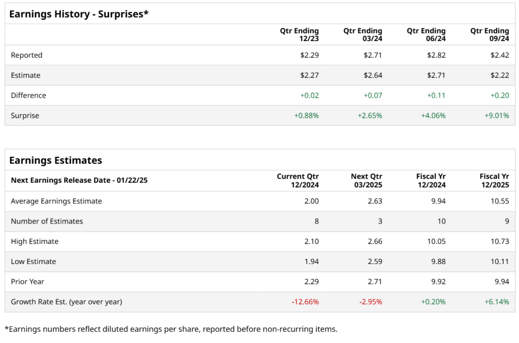 Valued at a market cap of $348.2 billion, Johnson & Johnson (JNJ) researches, develops, manufactures, and sells various products in the healthcare field and operates through pharmaceuticals, medical devices, and consumer products divisions. The New Brunswick, New Jersey-based company has one of the largest research and development (R&D) budgets among pharma companies. It is scheduled to announce its fiscal Q4 earnings results before the market opens on Wednesday, Jan. 22.