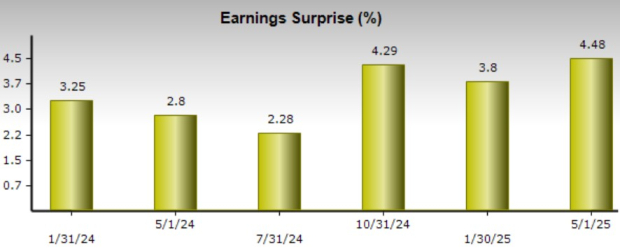 Mastercard’s annual earnings are projected to rise 10% in fiscal 2025 and are forecasted to spike another 16% in FY26 to $18.71 per share. Plus, Mastercard’s FY25 and FY26 EPS estimates are slightly up in the last 30 days.
