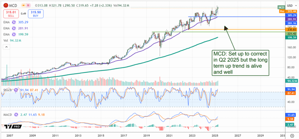 The risk in Q2 is that the analyst will trim targets or reduce ratings, which could strengthen the market headwind and potentially lead to a correction in this stock. Unlike many S&P 500 and restaurant stocks, McDonald’s did not correct in Q1 and early Q2 and is set up to do so as Q2 draws to a close. The upshot is that a correction in Q2 would set up a buying opportunity for the second half and 2026.