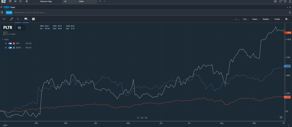 Meta Vs. Palantir: Meta boasts a 68% surge this year, whereas Palantir has outpaced it with a 133% climb. Positioned as the 11th best S&P 500 company, Meta’s performance is overshadowed by Palantir’s top position as the 4th best performer in the index.