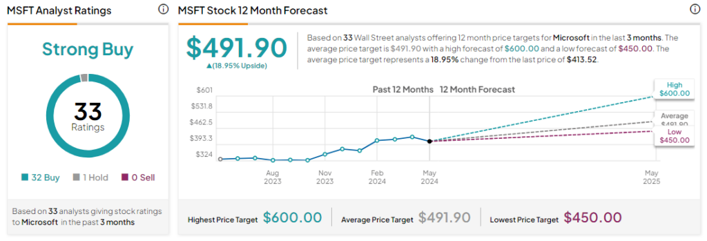 Despite the legal woes, analysts continue to be optimistic about MSFT stock, maintaining a Strong Buy consensus rating based on 32 Buy recommendations and one Hold. Since the beginning of the year, MSFT has seen a double-digit percentage increase, with the average price target standing at $491.90, suggesting a potential upside of 18.9% from current levels.