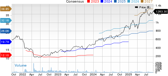 The Zacks Consensus Estimate for NFLX’s 2025 earnings is pegged at $26.06 per share, indicating a 31.42% increase from the previous year.