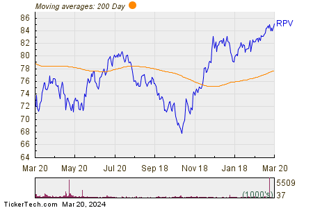 Considering RPV’s performance against its 52-week range, the ETF reached a low of $67.69 per share and a high of $85.37. The most recent trade occurred at $85.15. Furthermore, comparing the current share price to the 200-day moving average serves as a valuable technical analysis tool.