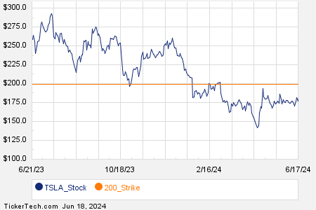 Excitement peaked around the $200 strike call option expiring on June 21, 2024, with 86,388 contracts traded, a representation of 8.6 million TSLA shares. This surge is akin to spotting a rare gem in a sea of rocks, a spectacle that captivates market enthusiasts and onlookers alike.