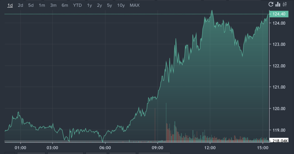 NVDA Price Action: Nvidia shares were up 5.15% at $124.76 at the time of publication Wednesday, according to Benzinga Pro.