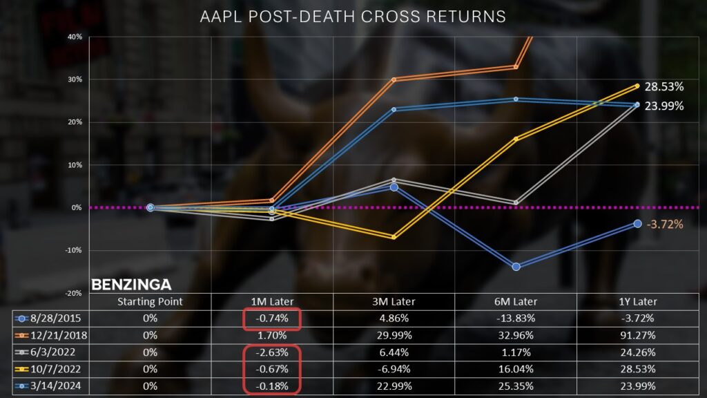 Here’s the thing about Apple stock: while its death cross statistically represents a compelling buying opportunity, in the near term, the indicator should be interpreted at face value.