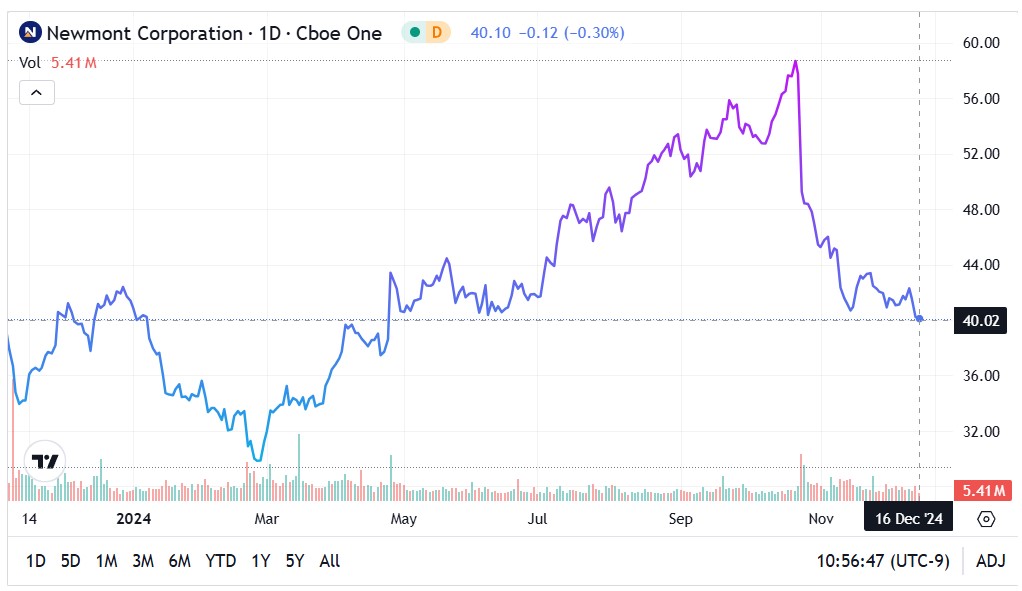 For example, the Dec. 27 options chain expires in 11 calendar days and features an average IV of 28.75%. Assuming a share price of $40.05, the product of the three metrics comes out to just under $2. In other words, the market anticipates, at most, NEM stock to rise to $42.05 or, at worst, fall to $38.05 by Dec. 27.