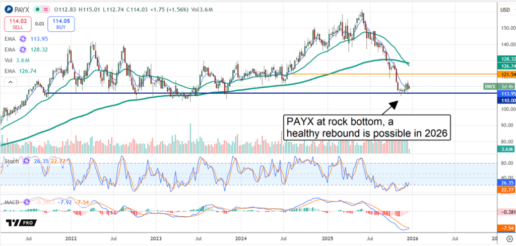 Analyst sentiment has been a headwind for PAYX stock in 2025, with downgrades and price target reductions reinforcing the downtrend. Even so, there are some constructive takeaways in the data. The first is that analysts limit downside in late 2025 as the low-end target of $110 aligns with a critical support target. The critical support target is the low end of a long-term trading range where a deep value is presented. Another bullish takeaway is the range of targets following the Q2 fiscal year 2026 (FY2026) release. It includes a low-end $110, but most align with the consensus, which points to low-double-digit upside for this high-yielding stock.