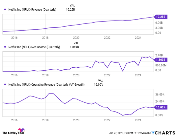 Netflix’s recent fourth-quarter results, once again, had the market buzzing. The company’s revenue jumped by 16% year over year to $10.2 billion. Netflix’s net income almost doubled to $1.9 billion, while it grew its paid memberships by 16% year over year to 301.63 million. One strong period may not mean much in the grand scheme of things, but Netflix has a habit of performing well.