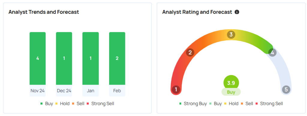 Benzinga tracks eight analysts with an average price target of $8.43 for the stock, reflecting a “buy” rating. Estimates range widely from $1.5 to $15. Recent ratings from Benchmark, and B. Riley Securities average at $12.5, suggesting a potential 71.70% upside.